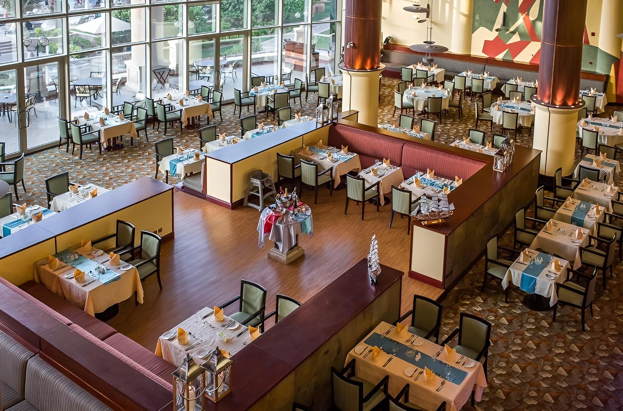 - Reggeli, félpanzió vagy All Inclusive. Minden étkezés büférendszerben. All Inclusive: vacsorázni az Azus Mediterranean a'la carte-étterem is lehetséges, egyes alkoholos és alkoholmentes italok, a La Piscine pool-bárban egyes alkoholos és alkoholmentes italok előre meghatározott időpontokban, a Black Pearl sportbárban ebéd és vacsora a'la carte-rendszerben. A vacsoránál alkalomhoz illő viselet ajánlott.